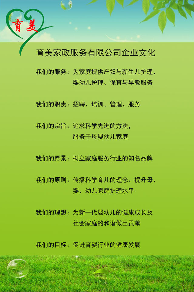 育美家政 專于婦嬰 來自華東 服務鄭州/育美家政服務有限公司是一家員工制管理(非中介)的公司。 主營業務:產婦護理和新生兒護理/0-3歲嬰幼兒護理/催乳按摩服務/月嫂和育嬰師培訓/家庭育兒入戶指導